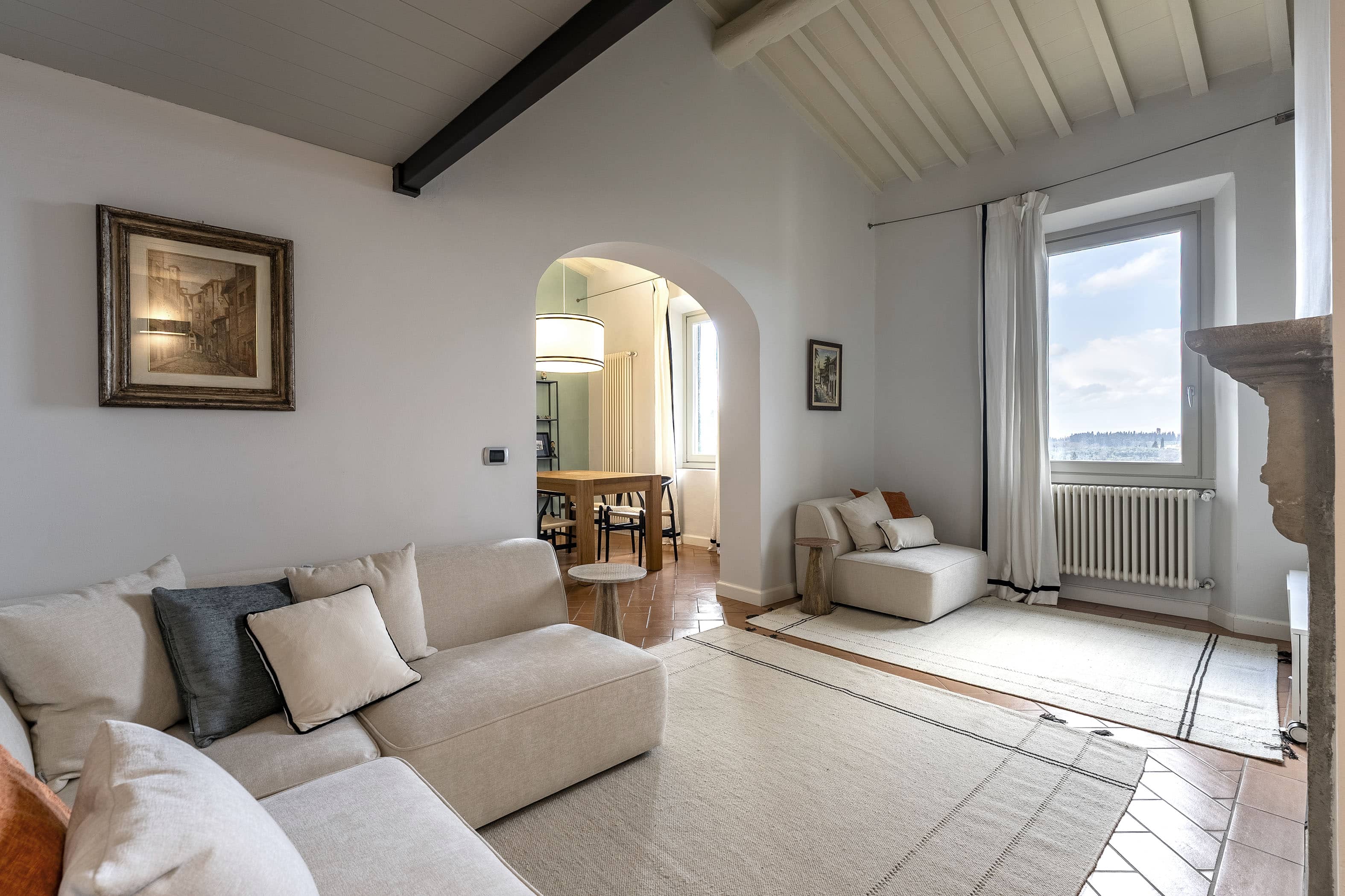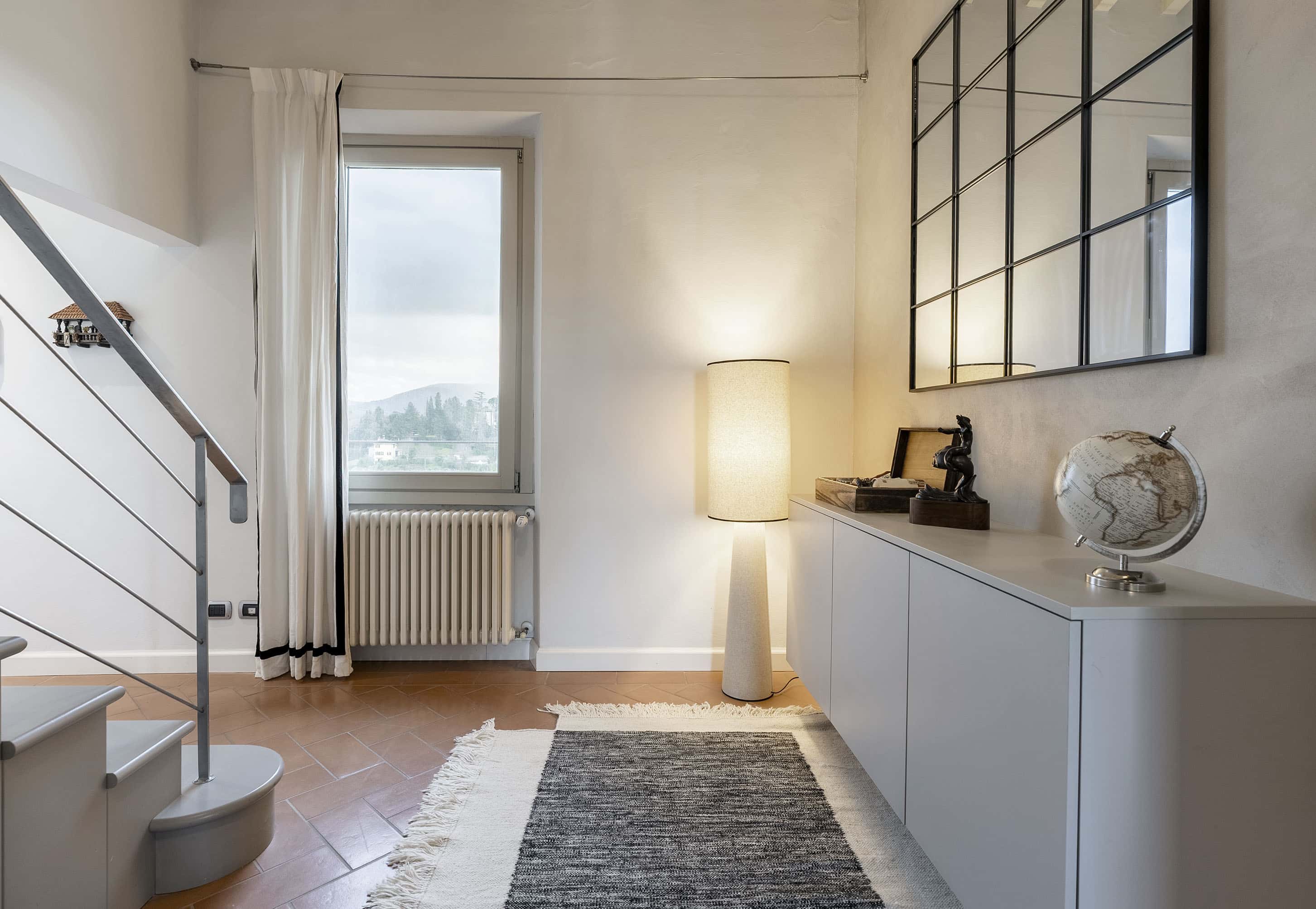 Il nostro intervento ha riguardato l’allestimento di alcune stanze di questo appartamento gioiello con vista Duomo ubicato sulle prime colline fiorentine. In particolare la committenza richiedeva spazi sobri e conviviali in cui far emergere la passione per le linee pulite arricchite da storie vissute nei propri viaggi attraverso il posizionamento dei numerosi oggetti di valore.